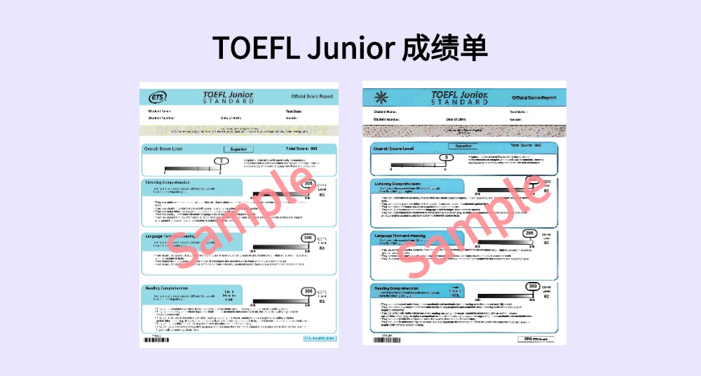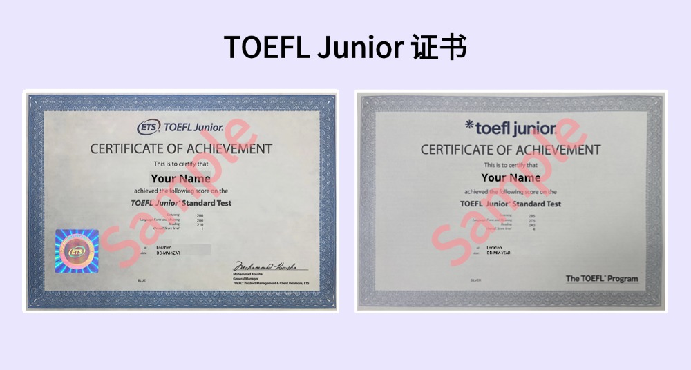 TOEFL Junior考试成绩单及证书现提供两个版本,均由ETS中国发行: